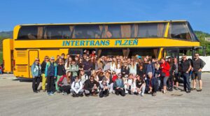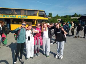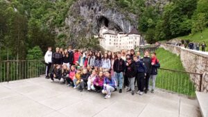 Naši žáci měli možnost zúčastnit se pětidenního zahraničního zájezdu, který pro nás připravila CA Plzeňská cestovka spolu s CA Intertrans Plzeň. Tentokrát nás program zavedl za krásami Slovinska s pobytem u moře. Prožili jsme nesmírně zajímavý program. První den na nás čekala nádherná soutěska Vintgar v NP Triglav. I přes původně nepříznivou předpověď počasí jsme měli štěstí a sluníčko svítilo celý den. Pak jsme vyjeli lanovkou na Vogel do výšky 1535 m a potěšili se panoramatickými výhledy na Triglav a Bohinjské jezero. Překonali jsme převýšení 1000 m! S jezerem jsme se rozloučili u kamenného mostíku Ribčev Laz u kostela sv. Jana Křtitele. Navštívili jsme také pomník 4 statečných mužů, který byl odhalen v roce 1978 na počest 200. výročí 1. výstupu na Triglav (2864 m). Poté jsme už přejeli do přímořského městečka Piran a ubytovali se v hotelu Vile Park***Premium, jehož součástí jsou mořské lázně Termaris. Samozřejmě jsme využili koupel ve slané vodě a v teplých vířivkách. Následující den nás čekaly Strunjanské útesy známé svým Měsíčním zálivem a solnými pánvemi. Zastavili jsme se u bílého kříže, který tu stojí od roku 1600 jako signál pro námořníky, aby věděli, že se blíží k pevnině. Dozvěděli jsme se, že se tu ve velkém pěstuje ovoce kaki. Třetí den se nám už bohužel počasí trochu pokazilo, přeháňky a zatažená obloha nám ale nevadily, protože jsme se mohli schovat v nesmírně krásné a rozsáhlé krasové jeskyni Postojnska jama, do jejíchž útrob nás zavezl elektrický vláček. Jeskyně zpřístupňuje 5,3 km svých pokladů z celkových 24 km, vyhlídkový vláček jezdí již od roku 1872, od roku 1884 tu mají elektrické osvětlení. Neobyčejným živočichem, který žije pouze tady, je macarát jeskynní, slepý obojživelník, dlouhý 20 – 30 cm. Byli jsme nadšeni rozlohou a nádherou krápníků a obrovských síní. Predjamski grad – naše další zastávka – nás upoutal zejména tím, jak důmyslně ho stavitelé zakomponovali do skalnatého útesu. Dnes renesanční úprava hradu nahradila čistě středověkou stavbu z 13. století. A přišel den poslední. Rozloučili jsme se s hotelem a jadranským pobřežím a přesunuli se k jezeru Bled na břehu stejnojmenného městečka. Prošli jsme si promenádu, nafotili typické loďky, které jezdí na známý ostrůvek uprostřed jezera s kostelem Nanebevzetí Panny Marie, tzv. pletny. Následoval přejezd do Kranjske Gory, kde jsme navštívili smaragdové jezero Jasna se symbolem této oblasti, sochou Zlatoroga. Tady jsme si také pochutnali na výborných párcích, které pro nás připravili páni řidiči. Z plánovaného programu už zbývalo málo: přírodní rezervace Zelenci u pramene řeky Savy a na úplný závěr pohled na skokanské můstky Planica s 2. největším skokanským můstkem na světě. Uteklo to jako voda, ale zážitky a vzpomínky nám nikdo nevezme. Moc jsme si to užili. Děkujeme paní průvodkyni Pavle Růžkové, oběma pánům řidičům a samozřejmě všem účastníkům zájezdu za poklidný a pohodový průběh. Veliký dík patří také vedení školy, že nám umožňuje takové úžasné projekty organizovat a podporuje nás v jejich pořádání. Zájezd určený pro žáky 6. – 9. ročníku (celkem 58 dětí) a uskutečnil se ve dnech 3. – 7. 5. 2025 pod vedením Mgr. Mattasové, Mgr. Šimanové, Mgr. Kroftové a Mgr. Pavlové.
