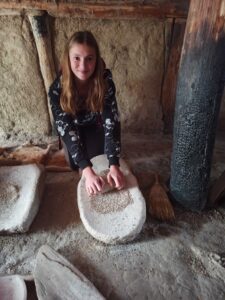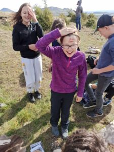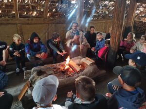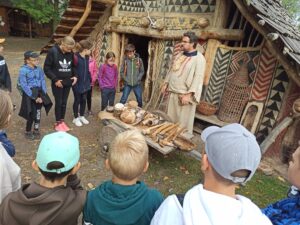 Výpravu do pravěku zažili žáci 6. ročníku ve středu 4. října. V archeoskanzenu Březno u Loun si vyslechli nejen zajímavé povídání pana průvodce a paní průvodkyně o předchůdcích člověka na našem území, ale sami si mohli vyzkoušet několik aktivit, které je do doby před mnoha tisíciletími zavedly skutečně přesvědčivě. Poznali, jak velkou trpělivost je třeba vynaložit k rozdrcení zrna na mouku, co to obnáší vyvrtat primitivními nástroji otvor do kamene, jak těžce se brousí ostří na křemenu. Ve druhé části exkurze se vžili do pozice pravěkých lovců a sběračů na nedalekém Písečném vrchu v lokalitě Bečov. Ozdobeni hlinkou na tvářích jako praví lovci se vraceli do autobusu obohaceni o nevídané zážitky. Věřím, že se všem výprava líbila a budou na ni rádi vzpomínat.