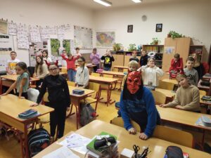 5. prosince jsem vstala a šla do školy. Ve škole se všichni oblékali jako čerti, andělé a Mikuláš. V chodbě se při první hodině nic nedělo. Čekali jsme je tedy druhou hodinu, ale zase nepřišli. Následovala třetí hodina, byla to angličtina. Bále jsem se, že dorazí a my jsme rozdělení. Naštěstí zase nic. O přestávce jsme slyšeli rámus od řetězů. Čtvrtá hodina byl tělocvik. Ještě než jsme odešli, vtrhli do třídy čerti a začala mela. Unesli Tondu Hodače i další děti. Zazpívali jsme jim vánoční koledu. Když odešli, šli konečně cvičně cvičit ( akorát že se necvičilo). Měli jsme čertí tancovačku, hráli jsme na babu. Zjistila jsem, že Áďa je nejrychlejší na světě a vůbec jsem ji nestačila.