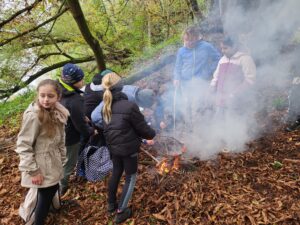 Jednoho sychravého rána se třídy 4.A a 4.B vydaly na pěší pochod k Čertovu mlýnu. Cestou žáci plnili zadané úkoly z vlastivědy, přírodovědy a zručnosti. Při příchodu na místo si žáci vyslechly pověst o Čertovu mlýnu a každý si domýšlel, jak to asi mohlo být doopravdy. Jedním ze zadaných úkolů bylo rozdělání ohně pomocí 3 zápalek. To se ale žádnému týmu nepovedlo. Naštěstí jsme ale díky panu učiteli oheň měli a mohli si opéct z domova donesené dobroty. Všichni pak krásně voněli kouřem. Akce se moc povedla.