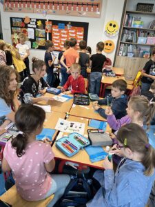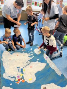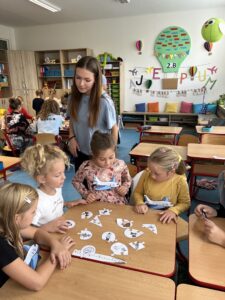 Počátkem října nás navštívili studenti ze střední školy v Plzni. Měli pro nás připravený projekt „Cestování po světě.“ Pod jejich vedením jsme plnili úkoly a dozvěděli se spoustu zajímavých informací o zemích celého světa. K dispozici jsme měli velkou mapu světa, kterou pro nás vyrobili. Na závěr jsme si v tělocvičně vyzkoušeli několik druhů tanců, které jsou v dané zemi populární. Všichni jsme si cestování po světě moc užili a těšíme se na jaro, kdy nás studenti opět navštíví.