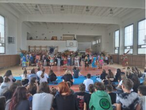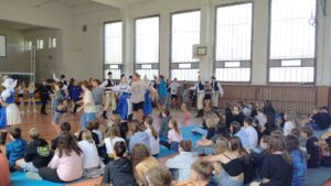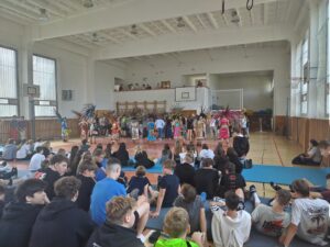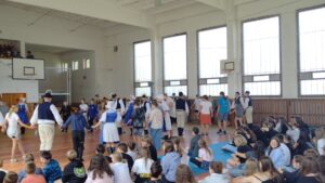 První vystoupení patřilo Slovákům, kteří předvedli nejen nápaditou choreografii svého vystoupení, ale i doplnili ho i o typické slovenské písničky. Na závěr vyzvali naše žáky ke společnému tanci.