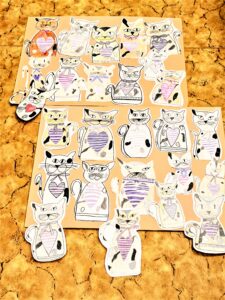 Dveře máme doma všichni. Určitě každému se stalo, že se třeba průvanem zabouchly. A tak v tu chvíli dojde k nepříjemné situaci. Abychom tomu předešli, můžeme si v obchodě koupit dveřní zarážku nebo ji vyrobit. A takovou máme právě ve třídě. Je to kočka ušitá z bavlny okrové barvy, s mohutným ocáskem a je 40 cm vysoká. Jméno nemá, je to prostě kočka. Na první pohled se zdá usměvavá, ale i záludná, možná i přísná. Nejspíš je ale hodná, protože má na hrudi velké srdce. Je mourovatá, s černými, hnědými a bílými fleky. Krk jí zdobí kostkovaná mašle. Spodní část těla je vyplněná pískem, aby byla těžká, ostatní výplň tvoří vatelín. Nám ve třídě slouží spíše jako dekorace a zároveň na nás dohlíží, jak pracujeme.