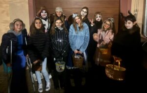 Teorie je skvělá věc, ale praxe je ještě lepší! Moji sedmáci nezůstali jen u slovíček v sešitech. Dnes večer se skupinka dívek, vyzbrojená originálními maskami a perfektně nacvičenými frázemi, vydala na tradiční koledu „Trick or treat!“.