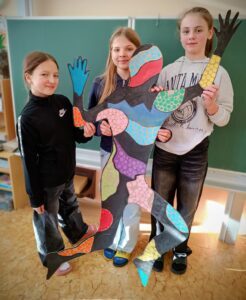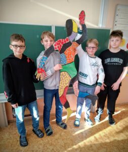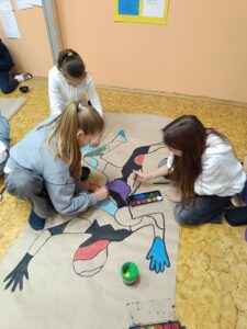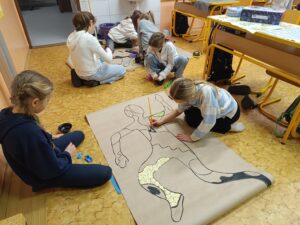 Tato výtvarná činnost nám pomohla lépe pochopit lidské tělo, rozvíjet naši kreativitu, spolupráci a schopnost vyjadřovat pohyb pomocí výtvarného umění.