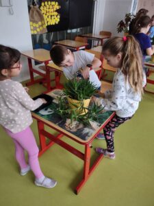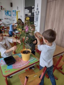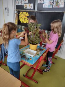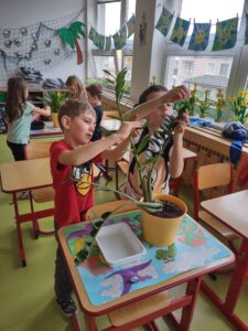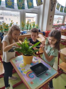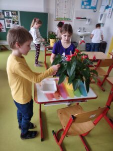 Jedním z pravidelně se opakujících témat pracovní výchovy na prvním stupni základní školy jsou pokojové rostliny a péče o ně. Při prvním setkání s touto tématikou jsme si povídali o tom, co k pěstování pokojových rostlin potřebujeme a jak se o ně staráme. Některé činnosti jsme si vyzkoušeli prakticky na rostlinách, které máme v naší třídě.