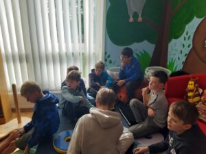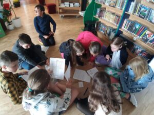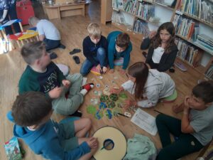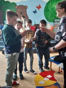 Paní z nakladatelství Thovt již dobře známe, takže nám bylo jasné, že se můžeme těšit na další motivační hru. Tentokrát zaměřenou na život ve středověku. Jako obvykle jsme se rozdělili do skupin, rozdali jsme si role (král, posel, obchodník, historik), dostali jsme k dispozici několik knih a hra mohla začít. Nebylo to tentokrát vůbec snadné. Chvíli nám trvalo, než jsme pochopili, jaký je smysl hry, které kartičky k čemu vybírat, jak postupovat a že si musíme naše kroky dopředu promýšlet. Nezískali jsme sice tolik bodů, kolik bychom si představovali, ale hru jsme nakonec zvládli a postavili tak středověké město. 4. B