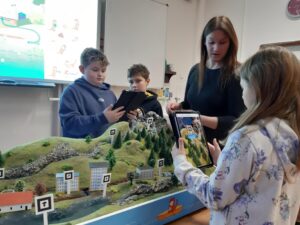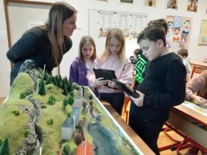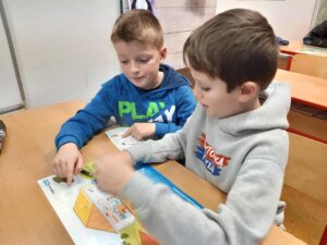 Dnes jsme se dozvěděli mnoho zajímavých informací o koloběhu vody v přírodě a také o tom, co se stane s vodou, kterou spotřebujeme doma při sprchování nebo úklidu. Lektoři z plzeňské vodárny nám přivezli ukázat velký model koloběhu vody. K jeho prohlížení se mohli používat i tablety. Také jsme pracovali ve dvojicích a lepili samolepky do připraveného obrázku. Už víme, co je úpravna vody i čistička odpadních vod a co do odpadu určitě nepatří. Naše setkání jsme ukončili kvízem. Protože jsme vše perfektně zvládli, odnesli jsme si jako odměnu lahev na pití a další drobné dárečky. Do třídy jsme dostali i krásného plyšového Bonifáce.