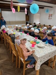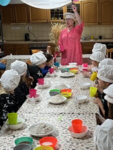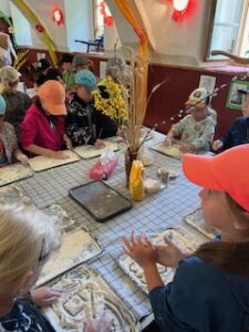 Na farmě jsme se zapojili do pečení chleba. Každý žák měl připravené pomůcky potřebné k pečení chleba – světlou a tmavou mouku, droždí, vodu, sůl, cukr, kmín, slunečnicová semínka. Podle instrukcí paní Jany si každý zadělal na malý bochníček chleba. Upečený chlebíček jsme si odvezli domů. Někteří z nás ho snědli ještě teplý.
