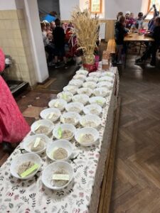 Také jsme se dověděli, jak se obilí pěstuje, sklízí, používá. Soutěžili jsme v přenášení obilných zrníček. Vyhrála děvčata.