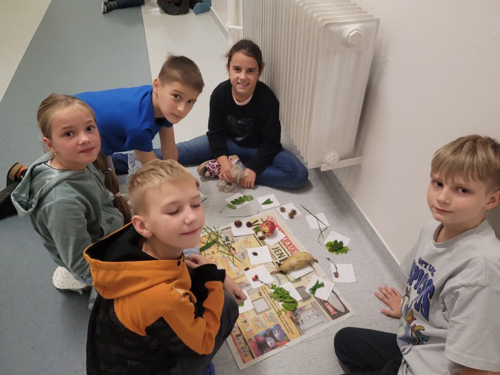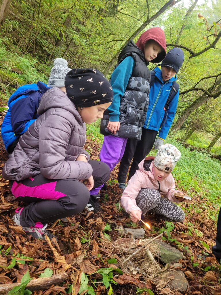 Naším cílem byl Čertův mlýn za Sencem. Celou dobu nás obklopovala mlha, která by se dala krájet. Ale my se nedali. V rozdělených týmech jsme zkusili vyplnit všechny úkoly. Vyhledávání plodin, listů stromů a trav problém nebyl, ale rozdělat oheň pomocí tří zápalek nám dal zabrat. A pak ještě přišla ke slovu morseovka, úkol, který jsme měli po vyřešení udělat, zněl – ze svých těl vytvořte srdce. Byl to boj. Přesto jsme se vrátili ke škole všichni zdrávi a bez zranění. V hodině vlastivědy jsme ještě vše vyhodnotili a tým s největším počtem bodů byli „oranžoví.“